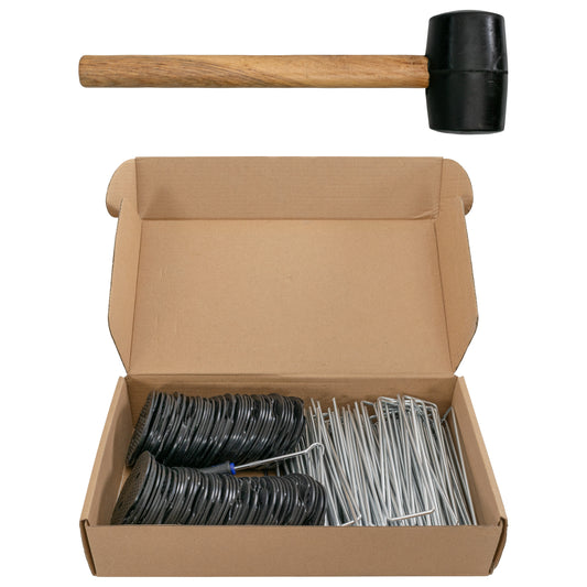 Weed Control Membrane Pegs Buffer Washer Set Blue with Rubber Mallet