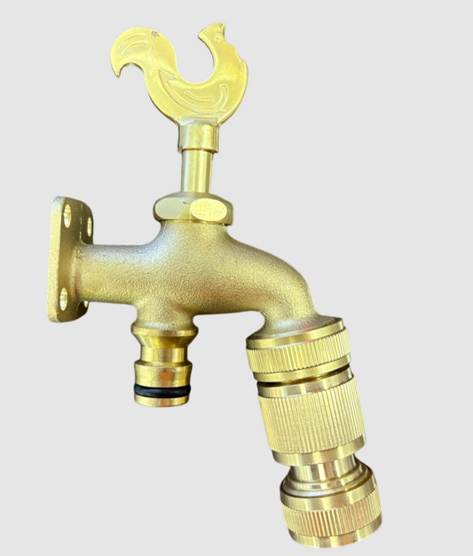 Brass Bib Tap Quick Connect and Hose Connector, Rooster Design