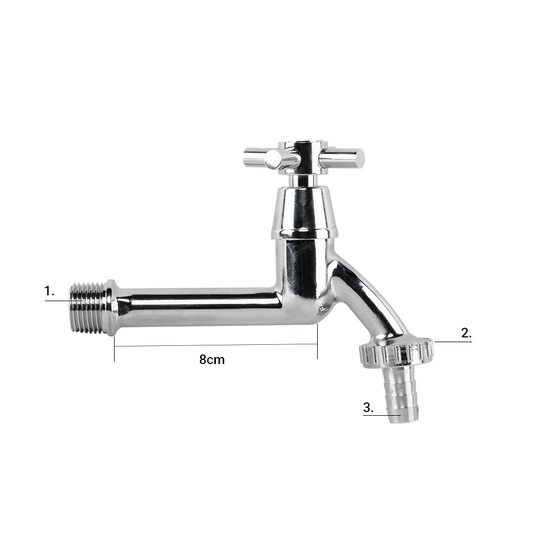 Cross Bib Extended Brass Chrome Tap 1/2" Barb