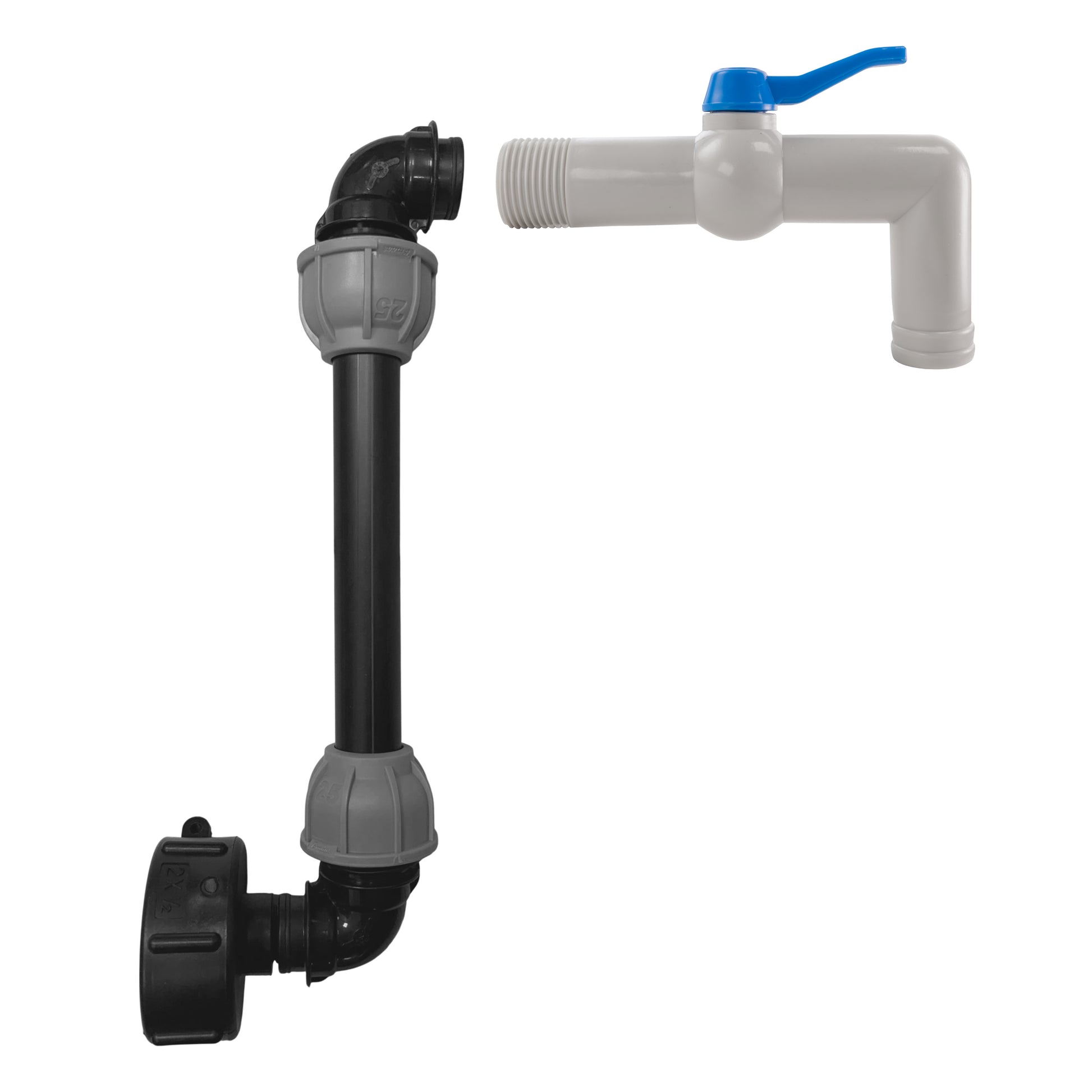 These IBC 25cm Riser Kits allow you to extend your tank connection. Each kit has an IBC Tank Adaptor, 25cm Riser Pipe, MDPE Elbows x2 and PTFE Tape. You can select which tap connection you would like from the options. There is also an option for the kit without a tap.