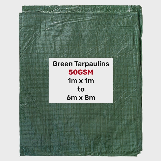 Our green 50gsm tarps come in various sizes allowing users to choose the one that best fits their needs. This tarpaulin is 6 metres x 8 metres. Other sizes are available on separate listings.