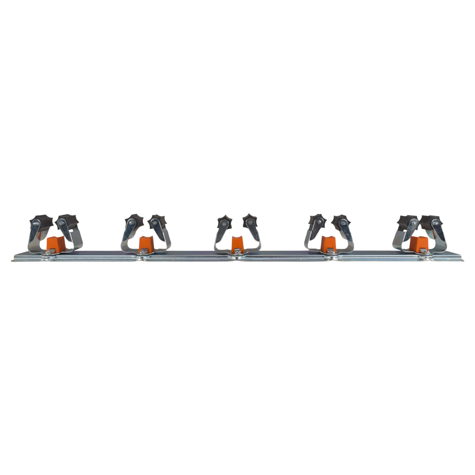 Keep your workspace tidy and tools within reach with the Wall Mount Tool Holder Rail – Roller Grip Design. This heavy-duty storage solution features five secure roller grip handles, each capable of holding tools with diameters from 20 to 35 mm. The 50 cm steel strip provides a compact yet efficient mounting system that’s ideal for garages, workshops, or garden sheds. Whether you're storing hammers, screwdrivers, or gardening tools, the roller grips lock them firmly in place, preventing slips or falls.