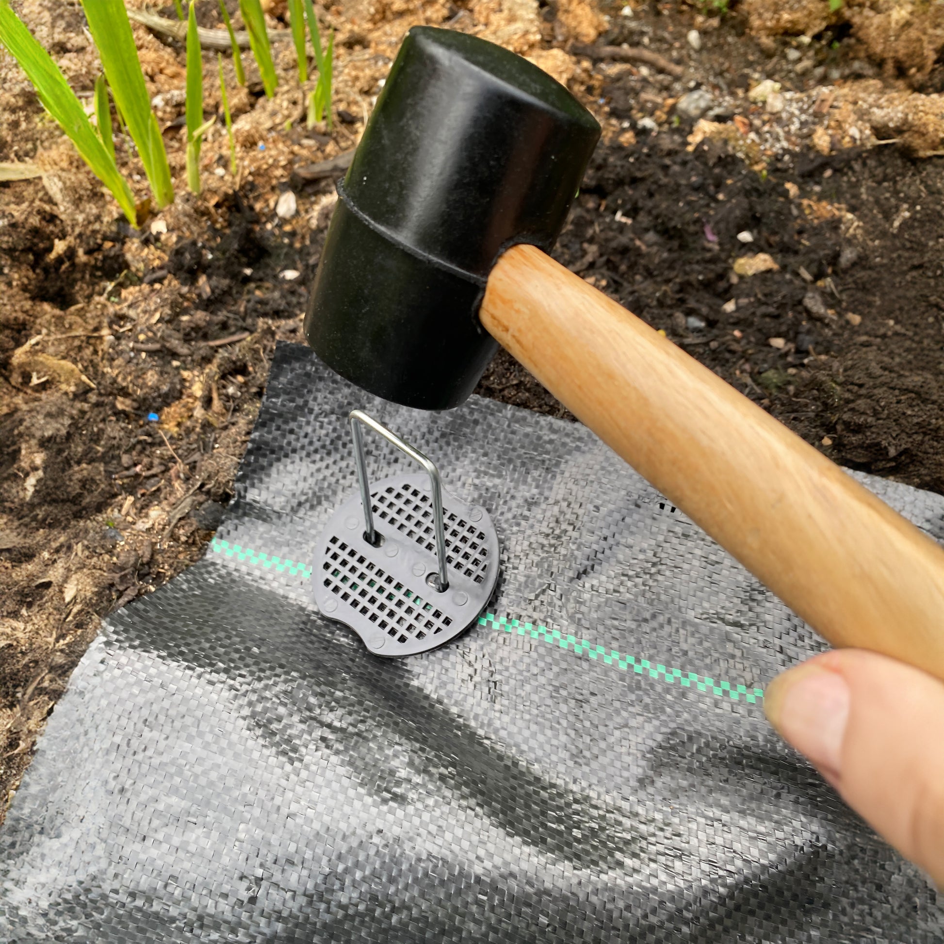 Overall, the Weed Control Membrane Pegs Buffer Washer kit is a must-have for anyone looking to securely hold down landscaping fabrics. The combination of durable metal pegs, protective washer plates, and a convenient hook tool provides a comprehensive solution for maintaining the integrity and appearance of your landscape projects. This kit ensures that your weed control fabric remains firmly in place, protecting your garden or landscaping area from unwanted plant growth while preserving the fabric's condition over time.