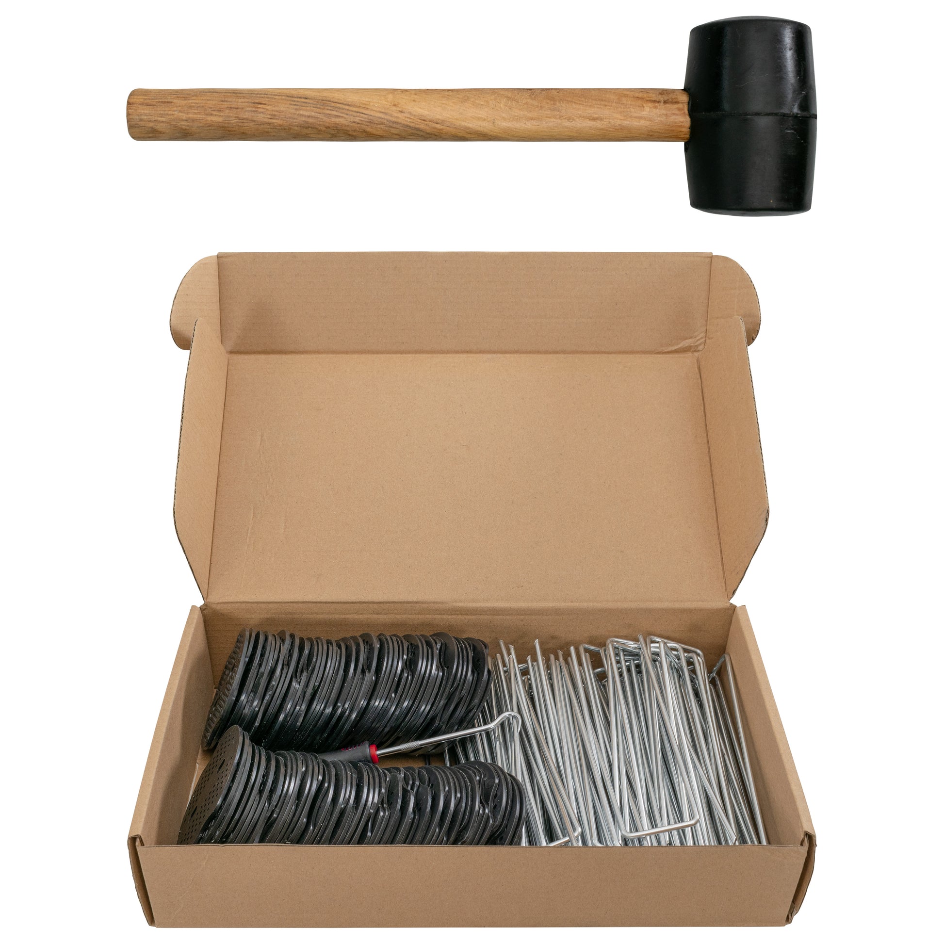 One of the key features of this kit is the metal construction of the pegs, which offers superior durability compared to plastic alternatives. The sturdy metal ensures that the pegs can withstand substantial pressure and stress without bending or breaking. This durability is crucial for long-term projects where consistent and reliable fabric placement is necessary. Whether you're dealing with heavy winds or frequent foot traffic, these metal pegs will keep your landscape fabric firmly anchored.