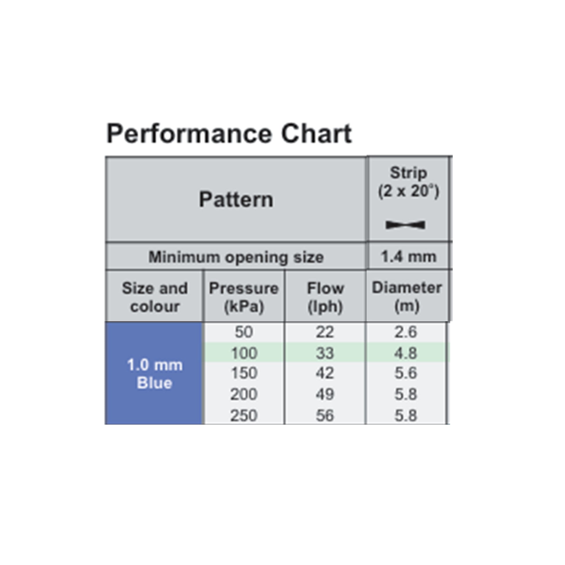 This type of sprinkler is highly water-efficient, as it delivers a precise amount of water directly to the root zones of plants, minimizing wastage due to runoff or evaporation. The Strip Spray 2x20° is perfect for areas where traditional circular or broad-spray sprinklers would be inefficient or impractical, providing tailored irrigation solutions for specific landscaping challenges. This sprinkler is specialised to cover narrow, rectangular areas making it ideal for irrigating garden beds, walkways, and other long, narrow strips of land.